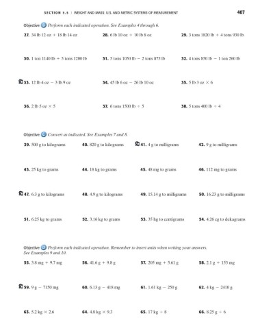S E C T I O N 5.5 I WEIGHT AND MASS: U.S. AND METRIC SYSTEMS OF MEASUREMENT 407