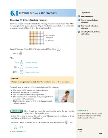 6.1 PERCENTS, DECIMALS, AND FRACTIONS Objectives