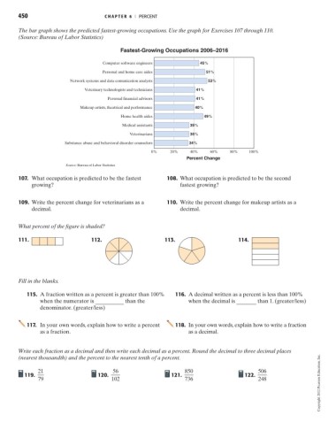 The bar graph shows the predicted fastest-growing occupations. Use the graph for Exercises 107 through 110.