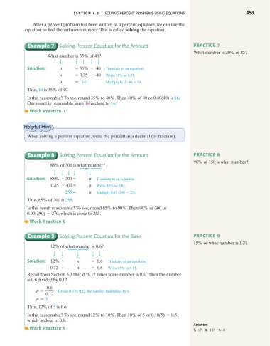 S E C T I O N 6.2 I SOLVING PERCENT PROBLEMS USING EQUATIONS 453