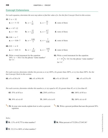 73. In your own words, explain how to solve a percent 74. Write a percent problem that uses the percent 50%.