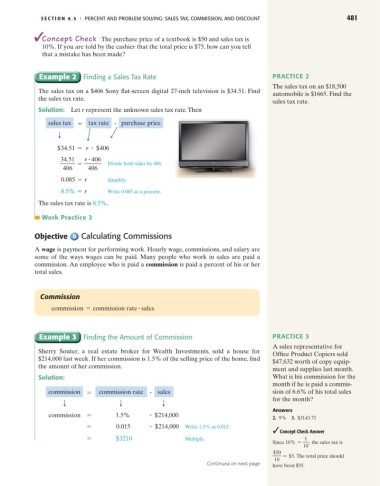 S E C T I O N 6.5 I PERCENT AND PROBLEM SOLVING: SALES TAX, COMMISSION, AND DISCOUNT 481