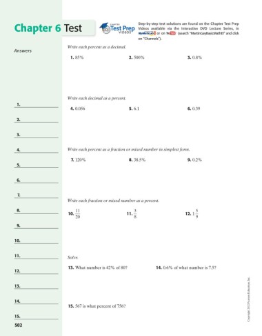 Chapter 6 Test Step-by-step test solutions are found on the Chapter Test Prep