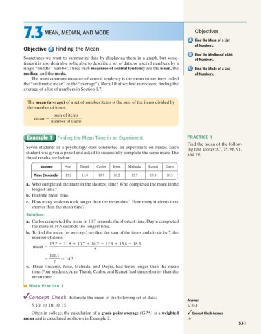 7.3 MEAN, MEDIAN, AND MODE Objectives