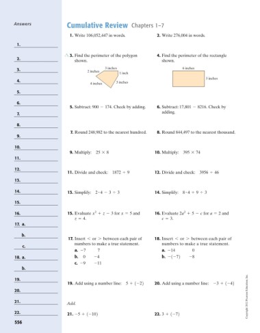 5. Subtract: 900 - 174. Check by adding. 6. Subtract: 17,801 - 8216. Check by