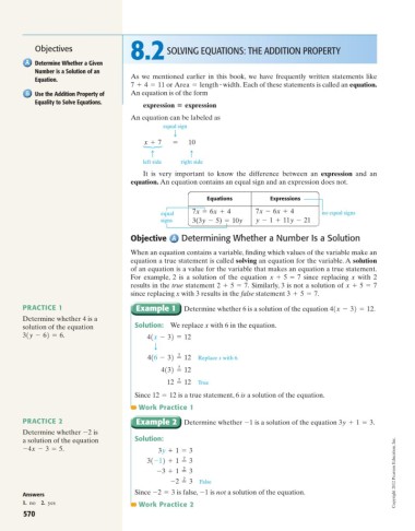 Objectives 8.2 SOLVING EQUATIONS: THE ADDITION PROPERTY