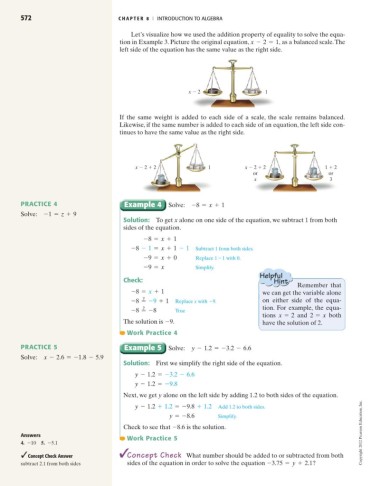 PRACTICE 5 Example 5 Solve: y - 1.2 =-3.2 - 6.6