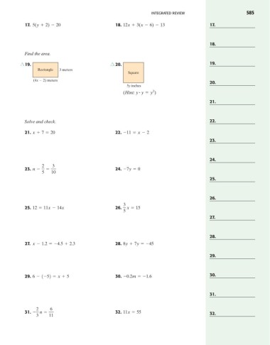 17. 5(y + 2) - 20 18. 12x + 3(x - 6) - 13 17.