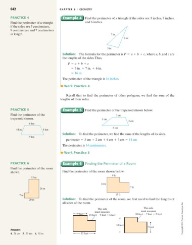 PRACTICE 4 Example 4 Find the perimeter of a triangle if the sides are 3 inches, 7 inches,