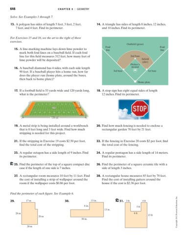 17. If a football field is 53 yards wide and 120 yards long, 18. A stop sign has eight equal sides of length