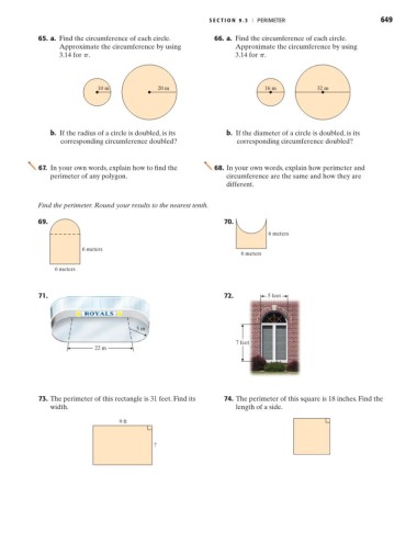 67. In your own words, explain how to find the 68. In your own words, explain how perimeter and