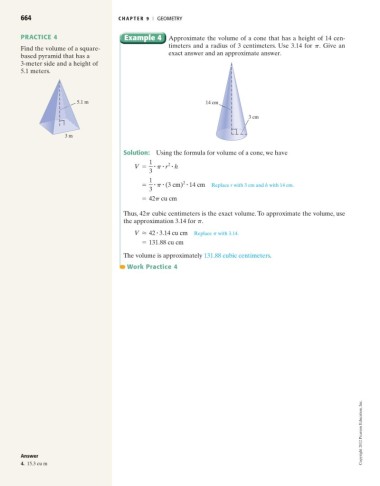 PRACTICE 4 Example 4 Approximate the volume of a cone that has a height of 14 cen-