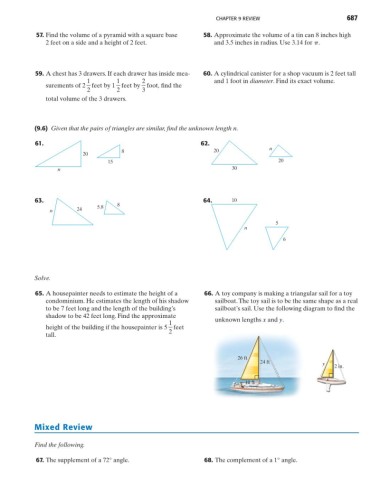 65. A housepainter needs to estimate the height of a 66. A toy company is making a triangular sail for a toy