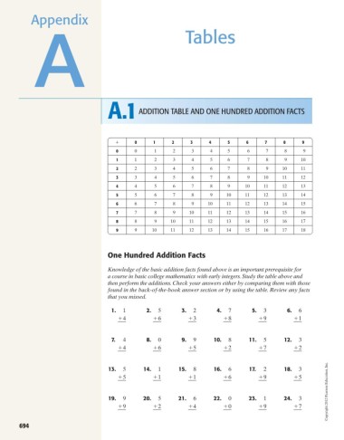 A.1 ADDITION TABLE AND ONE HUNDRED ADDITION FACTS