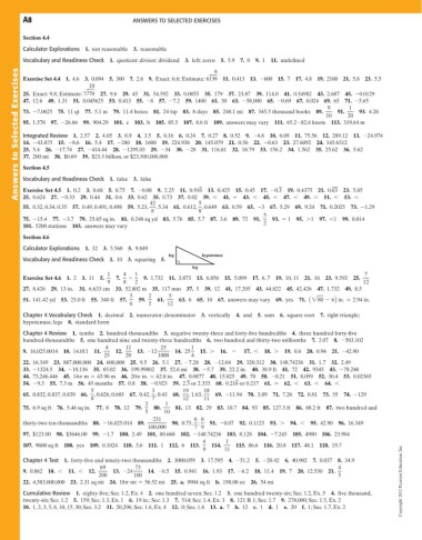 twenty-six; Sec. 1.2 5. 159; Sec. 1.3, Ex. 1 6. 19 in.; Sec. 1.3 7. 514; Sec. 1.4, Ex. 3 8. 121 R 1; Sec. 1.7 9. 278,000; Sec. 1.5, Ex. 2