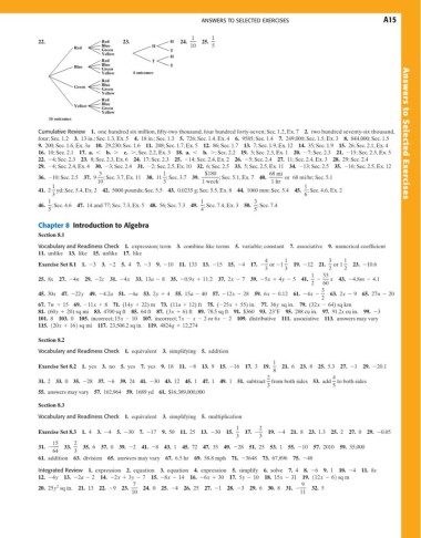 Cumulative Review 1. one hundred six million, fifty-two thousand, four hundred forty-seven; Sec. 1.2, Ex. 7 2. two hundred seventy-six thousand, Answers to Selected Exercises