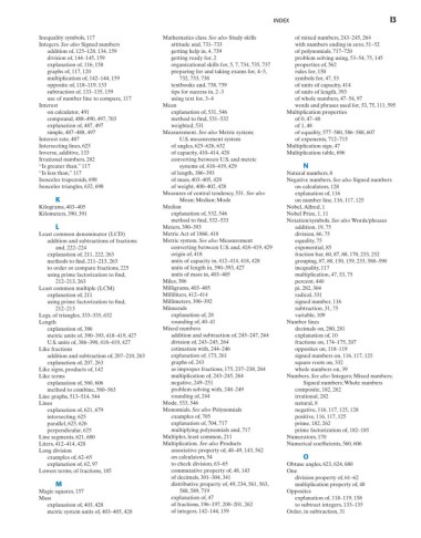 addition and subtractions of fractions Metric system. See also Measurement equality, 75
