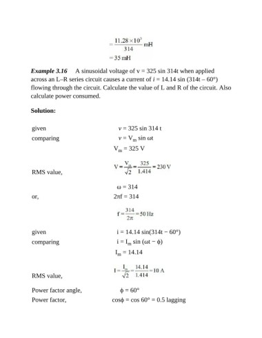 Example 3.16 A sinusoidal voltage of v = 325 sin 314t when applied