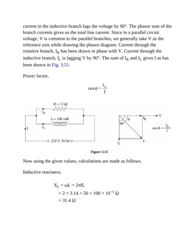 current in the inductive branch lags the voltage by 90°. The phasor sum of the
