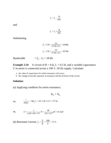 Example 3.34 A circuit of R = 4 Ω, L = 0.5 H, and a variable capacitance