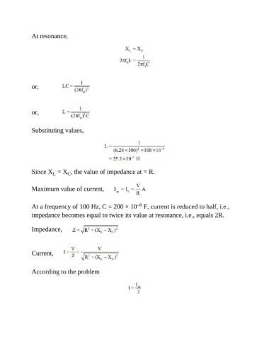 At a frequency of 100 Hz, C = 200 × 10 F, current is reduced to half, i.e.,