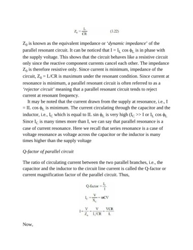 parallel resonant circuit. It can be noticed that I = I cos ϕ is in phase with