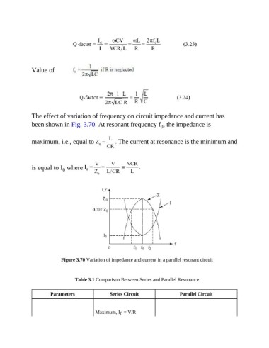 been shown in Fig. 3.70. At resonant frequency f , the impedance is