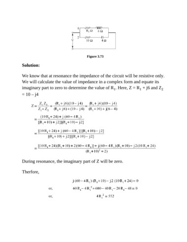 imaginary part to zero to determine the value of R . Here, Z = R + j6 and Z 2