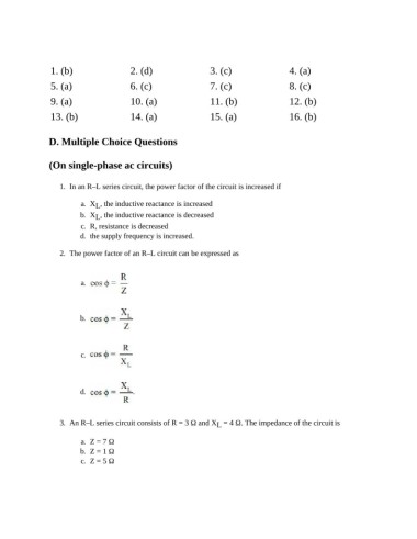 1. In an R–L series circuit, the power factor of the circuit is increased if