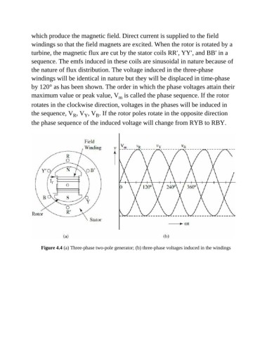 Figure 4.4 (a) Three-phase two-pole generator; (b) three-phase voltages induced in the windings