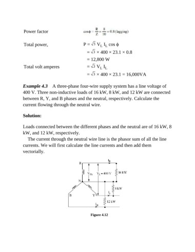 Example 4.3 A three-phase four-wire supply system has a line voltage of