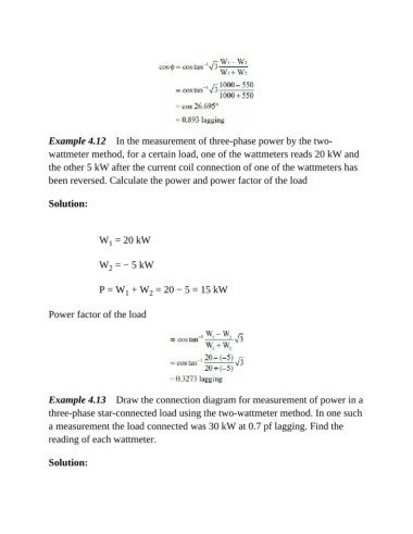 Example 4.13 Draw the connection diagram for measurement of power in a