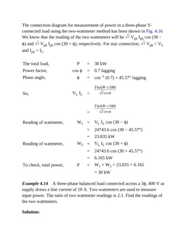 connected load using the two-wattmeter method has been shown in Fig. 4.16