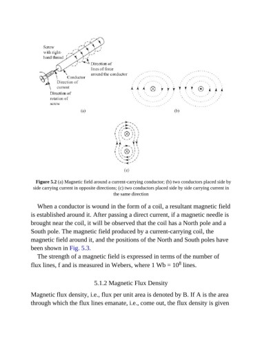 Figure 5.2 (a) Magnetic field around a current-carrying conductor; (b) two conductors placed side by
