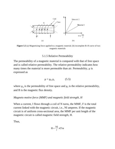Figure 5.5 (a) Magnetizing force applied to a magnetic material; (b) incomplete B–H curve of two