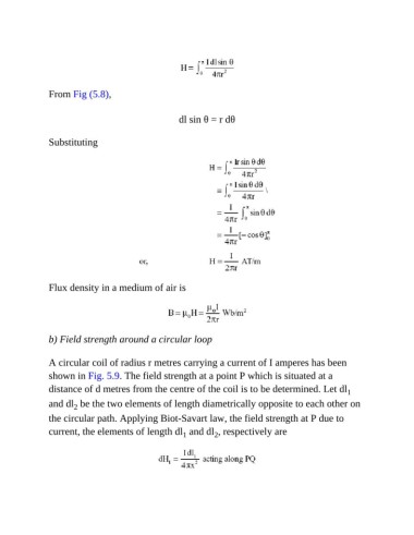 the circular path. Applying Biot-Savart law, the field strength at P due to