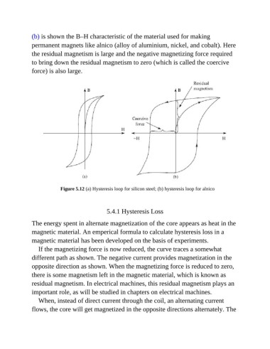 Figure 5.12 (a) Hysteresis loop for silicon steel; (b) hysteresis loop for alnico
