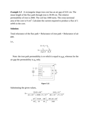 Example 5.3 A rectangular shape iron core has an air gap of 0.01 cm. The
