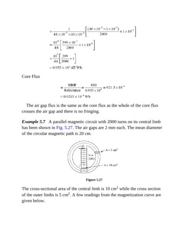 Example 5.7 A parallel magnetic circuit with 2000 turns on its central limb