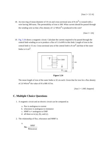 central limb winding so as to produce a flux of 1.6 mWb in this limb. Length of iron in the