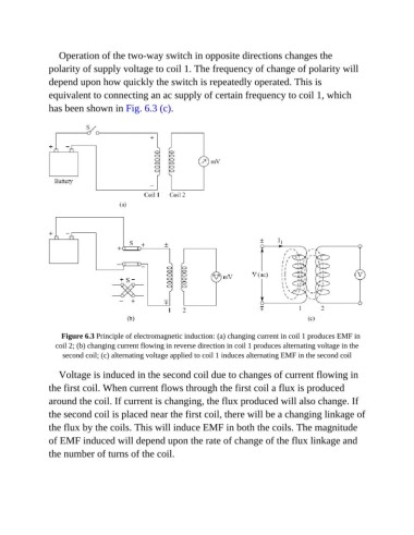 coil 2; (b) changing current flowing in reverse direction in coil 1 produces alternating voltage in the