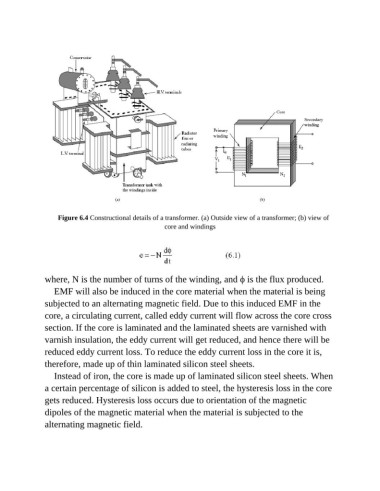 Figure 6.4 Constructional details of a transformer. (a) Outside view of a transformer; (b) view of