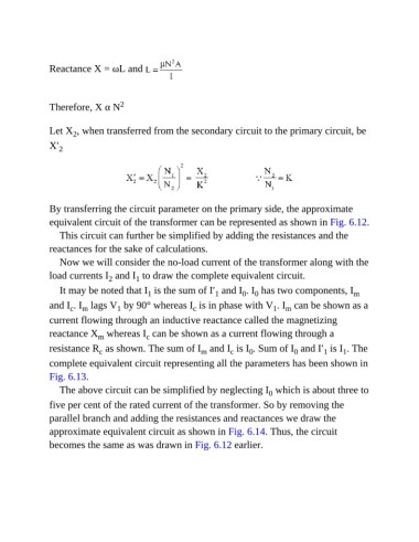 equivalent circuit of the transformer can be represented as shown in Fig. 6.12.