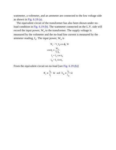The equivalent circuit of the transformer has also been shown under no-
