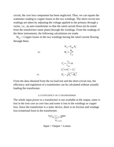 wattmeter reading to copper losses in the two windings. The short-circuit test