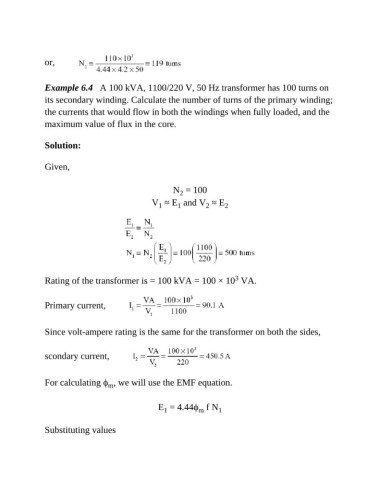 Example 6.4 A 100 kVA, 1100/220 V, 50 Hz transformer has 100 turns on