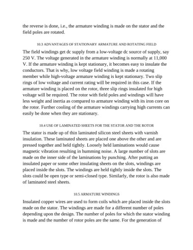 10.3 ADVANTAGES OF STATIONARY ARMATURE AND ROTATING FIELD