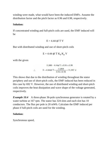 Example 10.4 A three-phase 36-pole synchronous generator is rotated by a