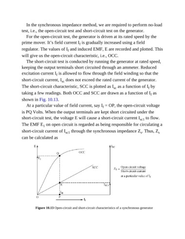 Figure 10.13 Open-circuit and short-circuit characteristics of a synchronous generator