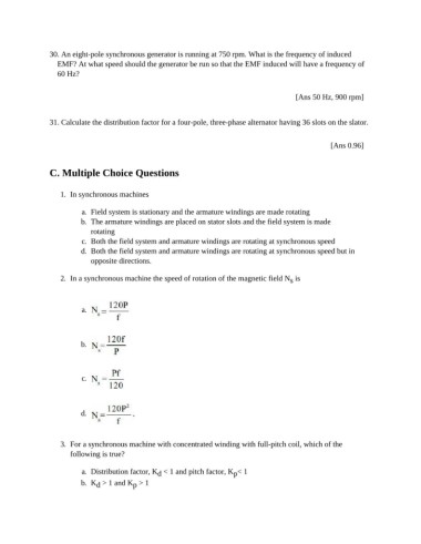 2. In a synchronous machine the speed of rotation of the magnetic field N is